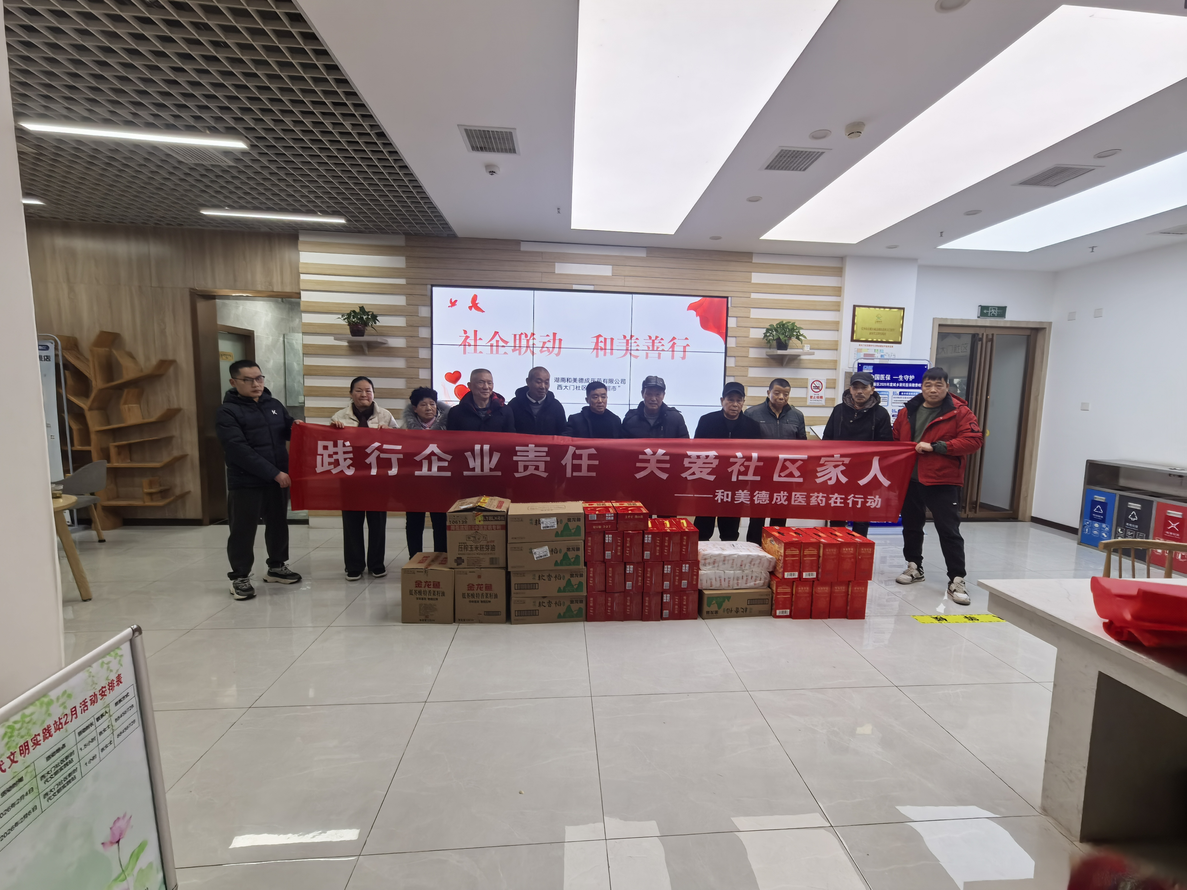 为积极践行企业社会责任,传递健康与温暖,湖南和美德成医药有限公司携手西大门社区开展“践行企业责任 关爱社区家人”主题慰问活动。送上慰问物资与健康关怀,普及安全用药与健康知识,以实际行动彰显医药企业的责任与担当,让社区家人感受到实实在在的温暖与关怀。
